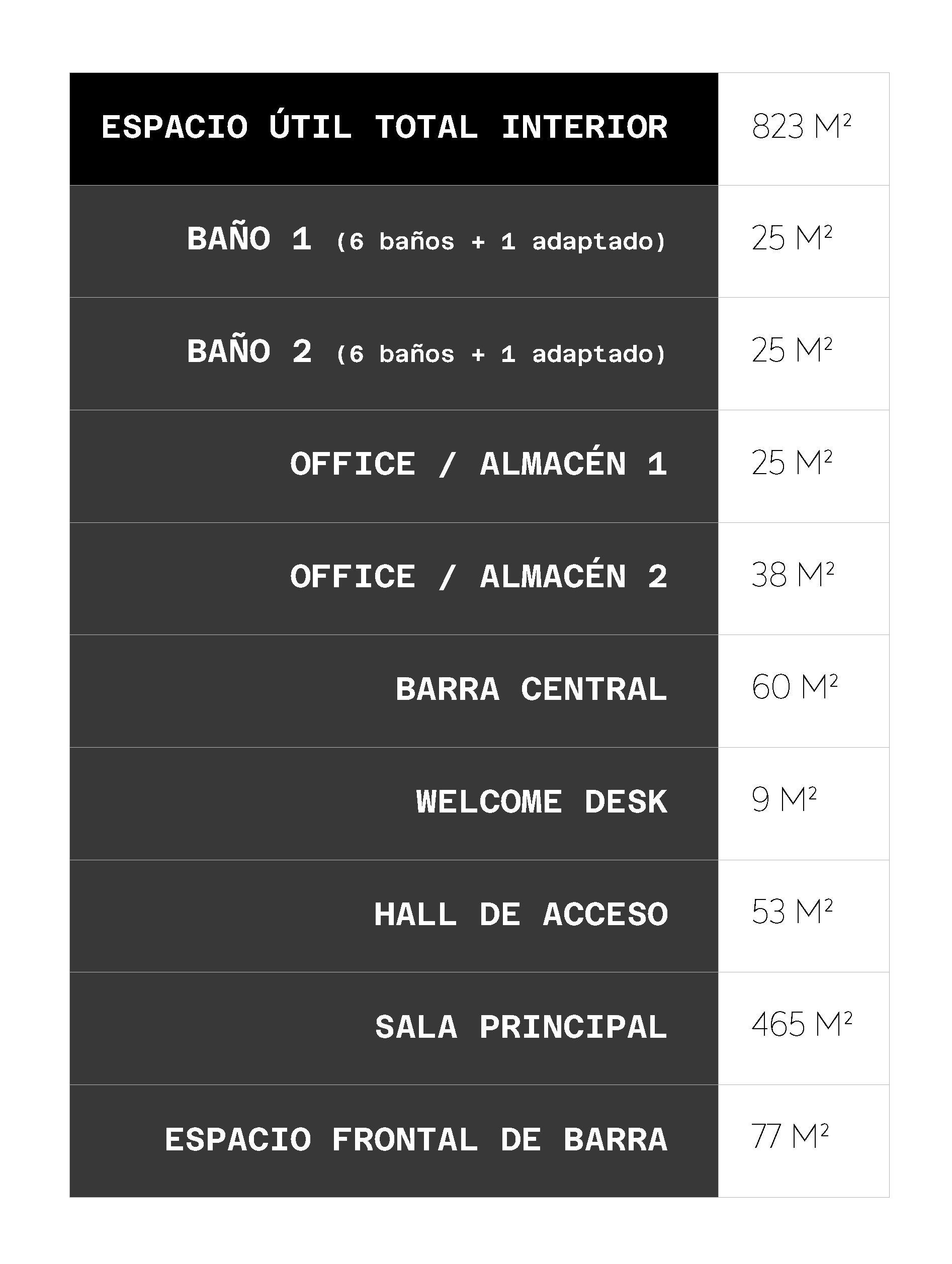 - 8 salidas de emergencia