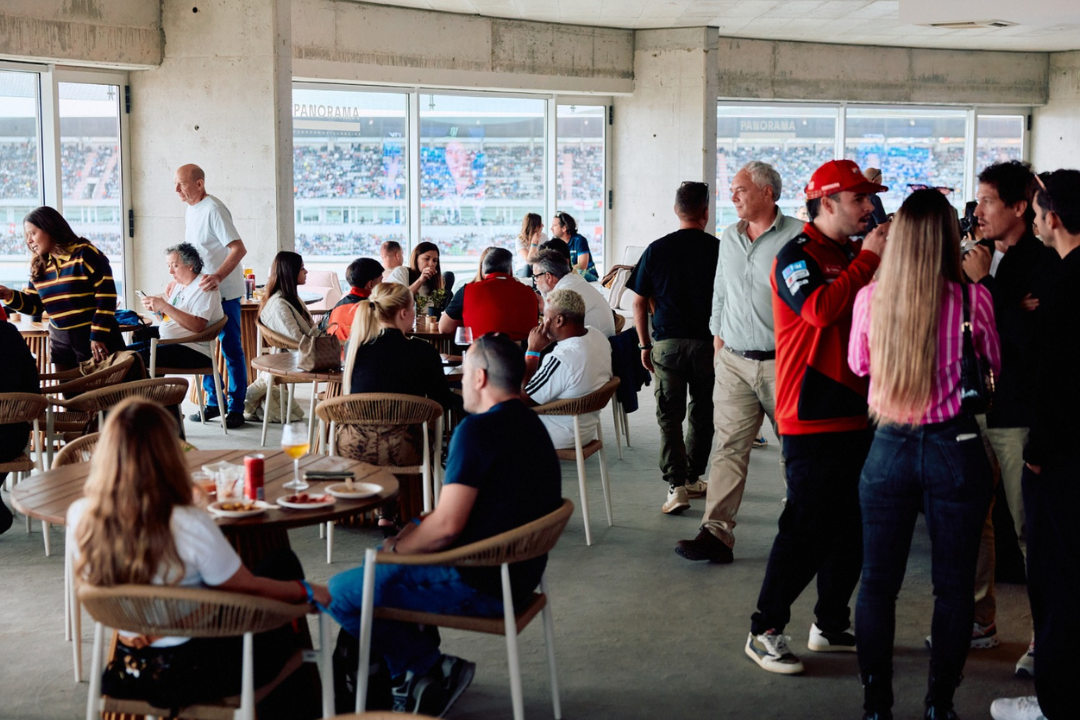El espacio combinó gastronomía, música y actividades que acompañaron la emoción de la pista. Los asistentes pudieron disfrutar de una zona de tattoos, simuladores, experiencias VR y de una propuesta gastronómica diseñada por 21deMarzo Catering Studio, con menús creados para sorprender y generar experiencias memorables. El diseño del espacio, en colaboración con SKLUM, aportó un ambiente moderno, confortable y acogedor, reafirmando el equilibrio entre comodidad y estilo que caracteriza la experiencia Panorama.